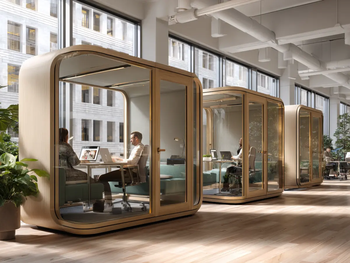 - Privacy for focused work: Employees can step into a quiet pod to concentrate on tasks without interruptions.